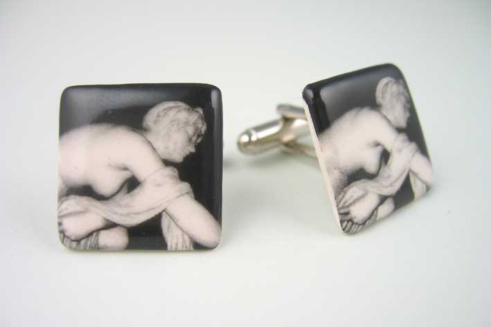Jewellery featuring some very familiar and some more obscure iconic london images (such as Thetis - statue of Achilles' mother dipping him in the Styx to make him immortal (V & A museum)).
